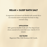 Luxurious, natural salts and organic botanicals to help calm the mind and relax the body in preparation for sleep.